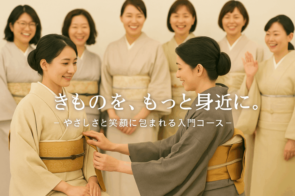 日本文化普及協会の「着付け入門コース」は、きものの美しさと楽しさを気軽に体験していただける大人気のコースです。